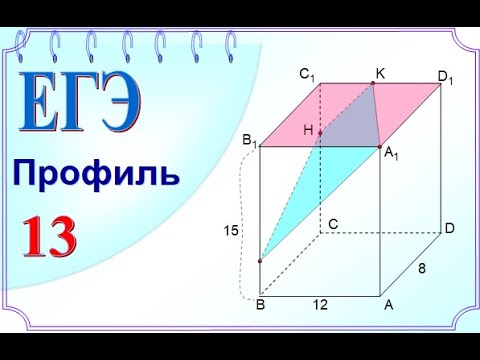 ЕГЭ математика, профиль. Задание 13. Стереометрия, 11 класс. Повторяем: свойство параллельных плоскостей, метод следов, углы с соответственно сонаправленными сторонами, координатно-векторный метод для нахождения угла между плоскостями. ЗАДАЧА. В прямоугольном параллелепипеде АBCDА₁B₁C₁D₁ известны длины рёбер АА₁=15, АВ=12, АD=8. Точка К – середина ребра С₁D₁, а точка L делит ребро ВВ₁ в отношении 4 : 1, считая от вершины В₁. а) Найдите отношение, в котором плоскость LKA₁ делит ребро СС₁, считая от вершины С₁. б). Найдите косинус угла между плоскостями LKA₁ и A₁В₁С₁.
