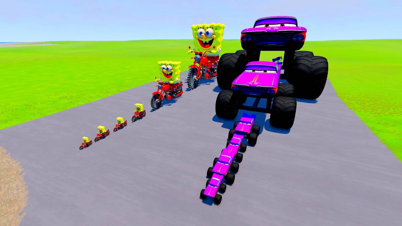 БОЛЬШОЙ И МАЛЕНЬКИЙ МОНСТР ТРЕК РАМОН ПРОТИВ БОЛЬШОГО И МАЛЕНЬКОГО НА МОТОЦИКЛЕ ГУБКА БОБ