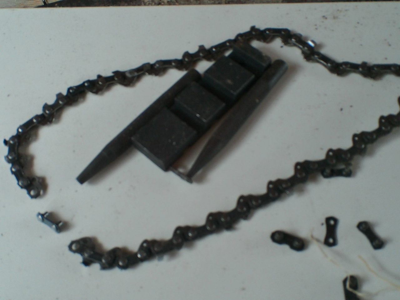 Расклепываю и заклепываю пильную цепь новым китайским приспособлением купленным на алиэкспресс.