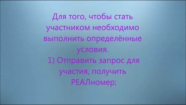 Стать участником: Отправляешь СМС на № телефона +7-951-462-13-81 с текстом REAL14721 и свою эл. почту mail.ru ОБЯЗАТЕЛЬНО. ЭКВилиТОР - это Ваш проект ili Право по рождению! ЭКВiliТОР - это Проект механизма бескровного создания НОВЫХ социальных отношений ,основанных на морали и нравственности в масштабе планеты. Создание Производств Питания: молоко, сыр, творог, и.т.д., делящиеся между пайщиками и только пайщиками безоплатно. Этот механизм позволит быть обеспеченным в прямом смысле этого слова, позволит через созидательный труд наладить нравственные отношения между людьми и возродить гармонию с природой, не разрушая её! Уход от старой системы( изчерпавшей себя) разрушающую человека и делающим его диградированным! Новые отношения позволят нашим детям жить и продолжать род в будущем. Инвестирование человека в человека-это новый путь к единению. В единстве сила, с этим не поспоришь!! ТЕХНИЧЕСКАЯ ЧАСТЬ ЭКВИЛИТОР !!!! Шаг 1. Отправляешь СМС на № телефона +7-951-462-13-81 с текстом REAL14721 и свою эл. почту mail.ru ОБЯЗАТЕЛЬНО. Шаг 2. Тебе приходит СМС в ней - ТВОЙ ЛИЧНЫЙ REALномер два номера телефона участников и единый номер оплаты; Шаг 3. Оплачиваешь любым удобным для тебя способом ВСЕГО 1000 рублей! На первый номер телефона, указанный в СМС 600 рублей. На второй номер телефона, указанный в СМС 300 рублей. На третий номер телефона, указанный в СМС 100 рублей. Оплатить можно через СБ-онлайн или ч/з салон связи, (берут комиссию ), чеки сохранить ОБЯЗАТЕЛЬНО! Шаг 4. После оплаты ты отправляешь СМС на № телефона +7-963-096-36-16 с текстом об оплате с указанием время оплаты в формате: Свой REALномер 1 – дата,время; 2 - наличными (дата,время если данный участник, сообщил свой РЕАЛномер по телефону); 3- дата,время. Шаг 5. Тех.поддержка все данные проверит. И тебе пришлют три REALномера, ты должен реализовать их другим людям. Не откладывая на потом. Желательно реализовать РЕАЛномера в течение 1-3 суток!