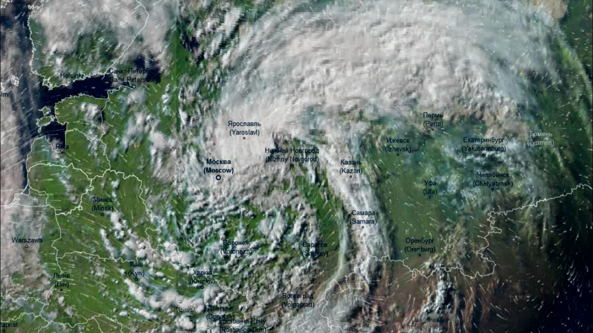 Дождливый циклон над ЕТР. Вид со спутника с 29 июня по 1 июля 2023 года