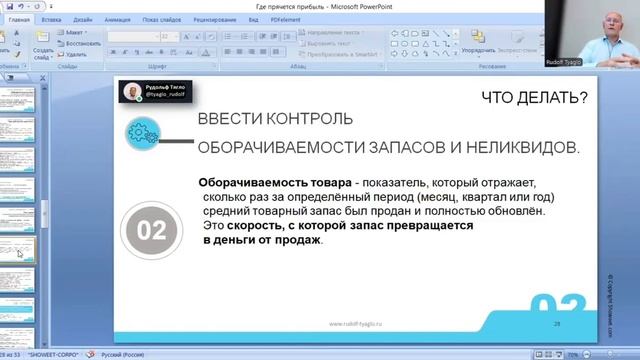 Оставить заявку на разбор отдела продаж: https://t.me/sistbiz Больше полезной информации в моем Telegram канале: https://t.me/bpsist Что было на эфире: 7:45 - прибыль в отчете — это не сумма денег на счете, а экономический показатель; 8:20 - понятие «прибыль»; 9:30 - на какие виды прибыли ориентируется бизнес? 12:00 - где мы это можем увидеть? 15:00 - фундаментальная причина; 17:15 - куда уходят деньги, если по отчету есть прибыль? 19:39 - топ 3 «черные дыры»; 20:50 - деньги заморожены в «дебиторке»; 22:55 - методы контроля ДЗ; 30:55 - деньги «заморожены в запасах»; 36:40 - рост незавершенного производства; 42:10 - как это увидеть? 3 отчета, которые понадобятся; 47:00 - как управлять этой ситуацией? 47:53 - как понять, что вам нужен УУ? 49:25 - что вы теряете при отсутствии УУ? 50:45 - из чего состоит УУ? 52:00 - как внедрить УУ? 54:30 - за какой период можно внедрить? 55:30 - что в итоге? 56:35 - истории заказчиков.
