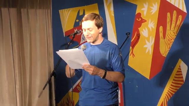 Юрий Тубольцев читает афоризмы на открытом микрофоне-марафоне Гриши Мовшица Москва 18.07.2024 г.