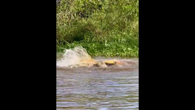 В сети распространяется видео схватки ягуара и аллигатора