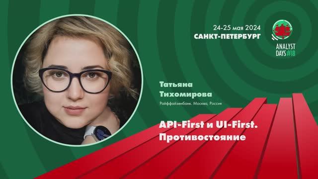 Analyst Days 18 — Татьяна Тихомирова, API-First и UI-First. Противостояние
