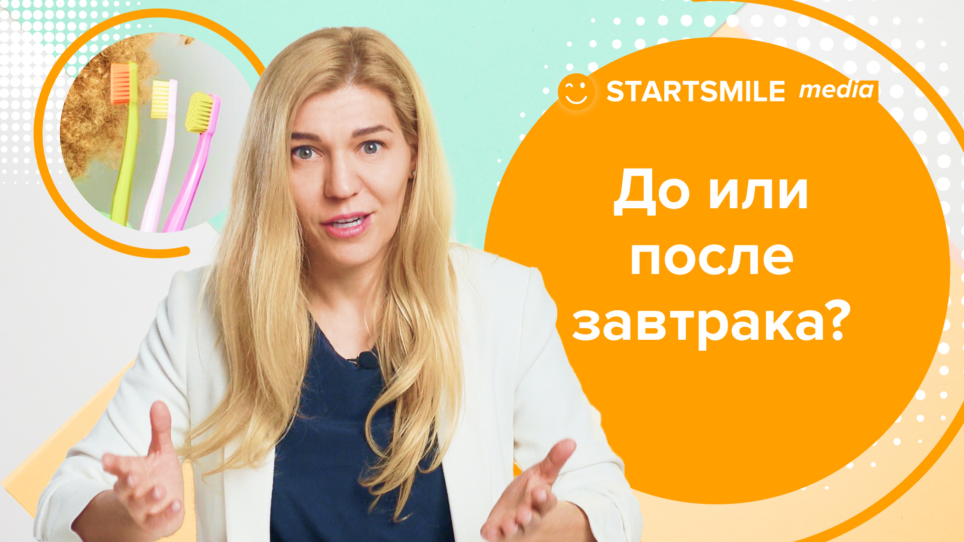 Когда нужно чистить зубы? Ждем ваши ответы в комментариях! Купите товары для чистки зубов - https://startsmileshop.ru/?utm_source=youtube&utm_medium=video&utm_campaign=kogdachistit1 Нужна помощь в поиске стоматолога? Звоните по телефонам: +7 (495) 132-07-57 — Москва +7 (812) 426-59-29 — Санкт-Петербург Наши специалисты помогут вам подобрать стоматолога в зависимости от ваших запросов! Понравилось видео? Подписывайтесь на канал и следите за здоровьем ваших зубов - https://www.youtube.com/c/StartsmileruTV?sub_confirmation=1 Когда нужно чистить зубы? До или после завтрака? Вечный вопрос, на который все отвечают по-разному. В этом ролике мы рассказали про плюсы и минусы одного и второго варианта. А уж как с ними поступать - решать вам. Чистка зубов — это комплекс мер, направленных на удаление зубных отложений с целью профилактики стоматологических заболеваний. От качества ее проведения зависит не только здоровье зубов, но и состояние десен, слизистой полости рта и даже органов желудочно-кишечного тракта. Во рту обитает более 20 видов бактерий, продукты жизнедеятельности которых негативно сказываются на здоровье зубов. Бактерии питаются частичками пищи, оставшимися на зубах после еды, и выделяют кислоты. Последние разъедают зубную эмаль, открывая микробам путь для проникновения внутрь, в результате чего формируется кариозная полость. При отсутствии лечения возможно поражение пульпы или периодонта. Кроме того, качественная чистка зубов отвечает и за ряд других функций: 1. Сохраняет здоровый цвет эмали 2. Освежает дыхание 3. Предупреждает воспаление десен и пародонта 4. Является профилактикой стоматита (воспаления слизистой) #Стоматолог #StartSmile #Простоостоматологии Startsmile на других платформах: https://zen.yandex.ru/startsmile - Яндекс Дзен https://vk.com/startsmileru - VKontakte https://ok.ru/group/52018978750645 - OK https://www.startsmile.ru/ - сайт экспертного журнала о стоматологии https://rating.startsmile.ru/ - рейтинг частных стоматологических клиник России https://www.instagram.com/startsmile_ru/ - Instagram https://www.facebook.com/startsmile.ru - Facebook