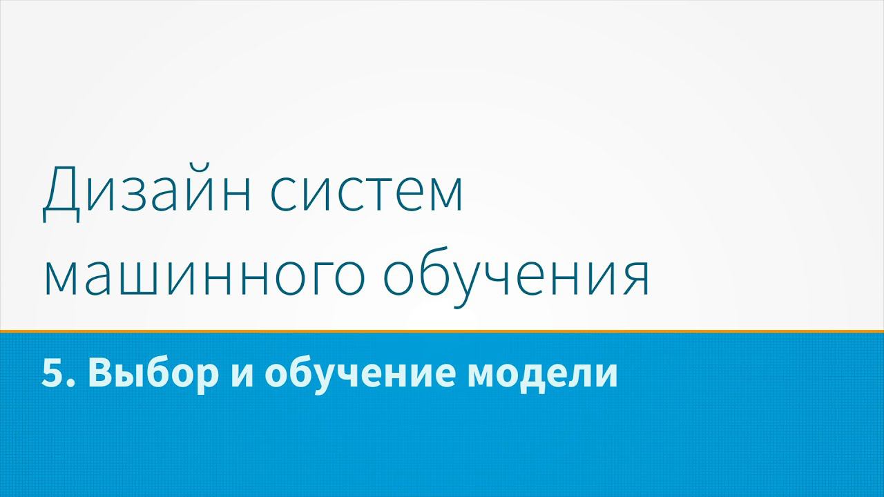 Дизайн систем машинного обучения, лекция 5 - Выбор и обучение модели