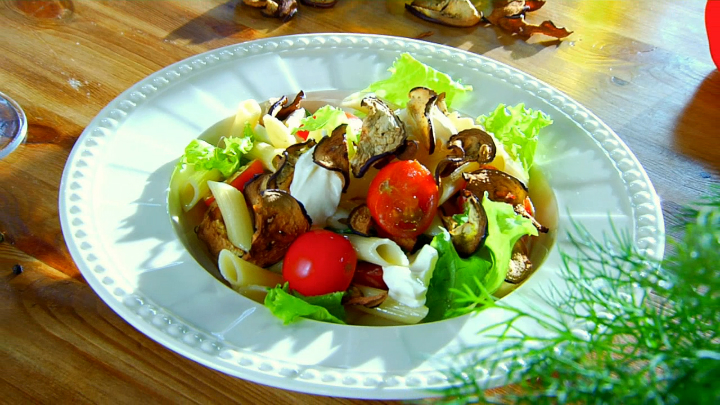 На Открытой кухне сегодня собрались девчонки, чтобы отметить помолвку своей подруги. В меню сегодня изысканные, но очень простые в приготовлении блюда - французский запеченный куриный паштет, салат с пастой и чипсами из баклажанов и кофе с медом и халвой.