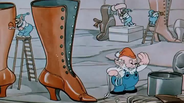 К бедному башмачнику и его жене в окно постучался маленький эльф, замерзший и голодный. Башмачник разделил с ним последнюю плюшку, что у него была, а эльф отблагодарил его, позвав своих друзей на помощь старику.