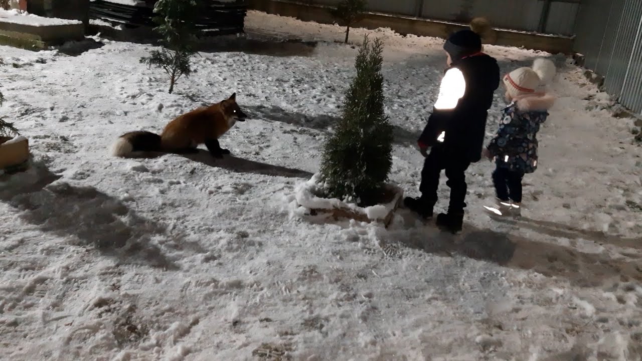 ЛисЯша играет с детьми на снегу.mp4