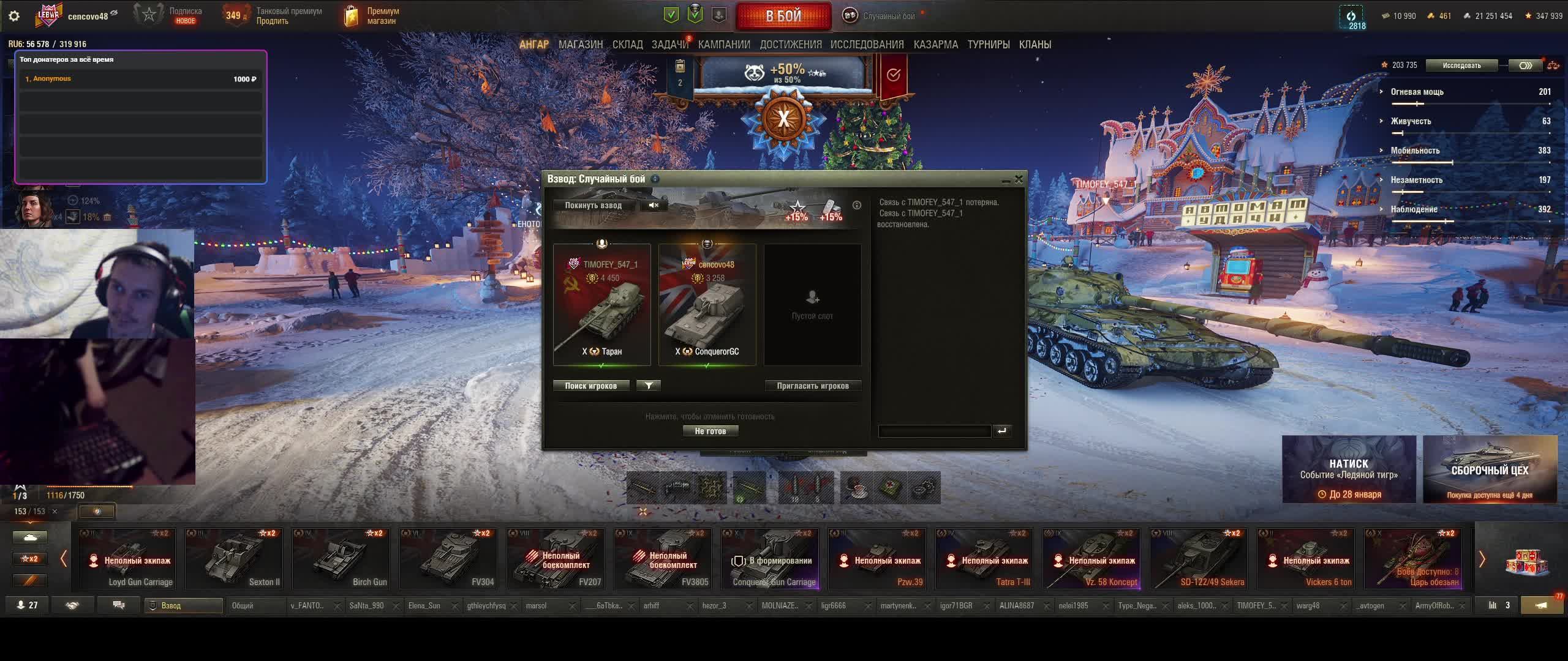 Привет! Добро пожаловать на стрим, самая большая поддержка для меня сейчас это лайк и подписка, поэтому если ты поставишь палец вверх и нажмешь на эту большую красную кнопку я буду очень благодарен мой Trovo https://trovo.live/dmitrypolyakow2010 донат https://donatty.com/dmitrypolyakow2011 https://www.donationalerts.com/r/gkqqh Группа в ка https://vk.com/public200923194 Telegram https://t.me/cencovo48 дискорд https://discordapp.com/channels/56952 ... ка https://vk.com/id90471262 мой кланhttps://lesta.ru/clans/wot/450150/ пк Характеристики Процессор AMD Ryzen 9 7900X Материнская плата MSI PRO B840-P WIFI Видеокарта Palit GeForce RTX 5070 Оперативная память Kingston FURY Beast Black [KF556C36BBEK2-32] 32 ГБ Корпус Cougar MX110 RGB [MX110 RGB Black] черный Блок питания DEEPCOOL GamerStorm PQ1200G [R-PQC00G-FD0B-WGEU-V1] черный 512 ГБ M.2 NVMe накопитель ARDOR GAMING Ally AL1284 2000 ГБ M.2 NVMe накопитель ADATA LEGEND 900 Кулер для процессора DEEPCOOL AG620 BK ARGB V2 Монитор LG 29WP60G-B [29WP60G-B.ARUZ] клавиатура Defender Doom Keeper GK-100DL (45100) мышь A4Tech Bloody P81s Starlight Микрофон Trust Mico USB Microphone (20378) Веб-камера Defender C-090 Black музыкального центра LG XBOOM DM5360K наушники Sven AP-G888MV Корпус Middle Tower AeroCool "BattleHawk