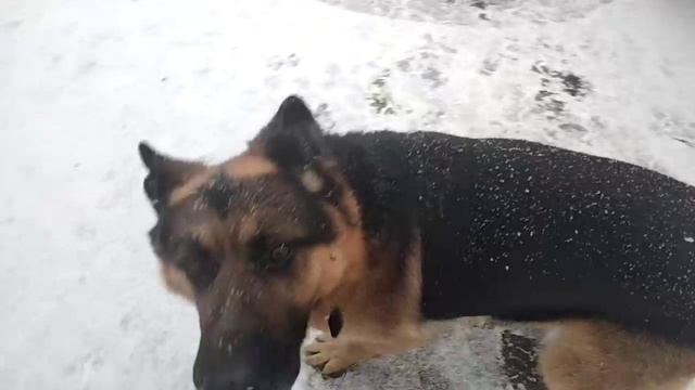 Пёсик Рэй тоже побегал по снегу