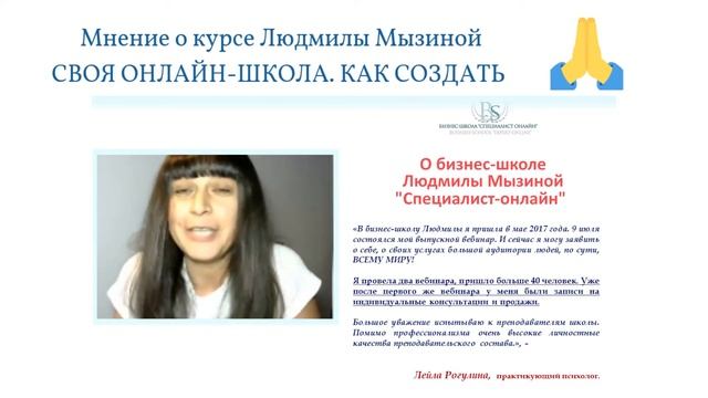 О бизнес-школе Людмилы Мызиной говорит психолог - Лэйла Рогулина.