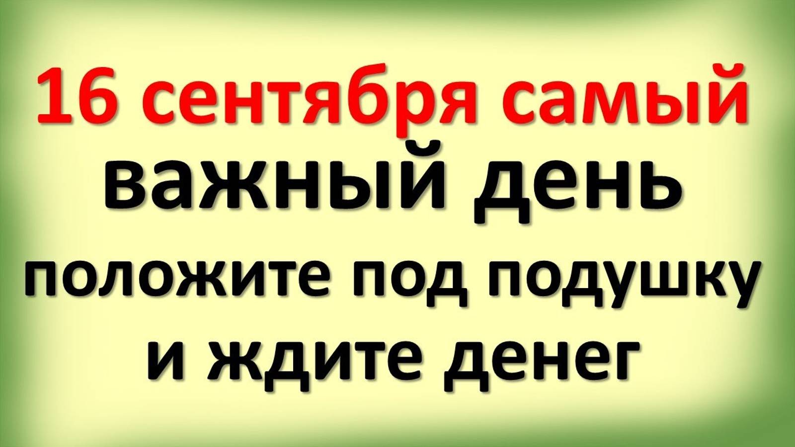 Сегодня 16 сентября самый важный день, положите под подушку и ждите крупной суммы денег