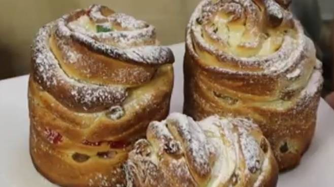 Легкий рецепт! Пасхальный Кулич — Краффин, очень вкусный рецепт пасхального кулича. Готовитесь к празднику или просто любите вкусную выпечку - тогда этот отличный рецепт вам понравится. Как испечь легкий и вкусный краффин - смотрите в моем видео. Рецепт и приготовление: 80 мл теплого молока (35-38°) 10 грамм сахара (1 столовая ложка) 7 грамм сухих дрожжей ( 1 чайная ложка) 1 яйцо и 2 желтка 100 грамм сахара (0,5 стакана) Хорошо взбить. 350 грамм муки (2,5 стакана) Соль Растопленное сливочное масло 40 грамм (4 столовые ложки) Цедра апельсина Дрожжевая смесь Оставить тесто в теплом месте на 1 час Раскатать тесто 2-3 мм Смазать сливочным маслом Посыпать изюмом, орехами, цукатами, миндалем, что вам больше нравится. Разрезать, свернуть разрезанной частью вверх Форма диаметром 10 см, поставить в теплое место на 30 минут Выпекать в хорошо разогретой до 200°духовке первые 10 минут, затем убавить до 180° и выпекать до готовности. Посыпать сахарной пудрой. Друзья, если вам понравилось видео, вы можете помочь каналу: 📢 поделитесь этим видео с друзьями в социальных сетях. ПОДПИШИТЕСЬ на наш канал, нажмите на колокольчик! Оцените видео! 👍 - для нас это приятно и важно для развития канала! Подпишитесь на канал! НАПИШИТЕ КОММЕНТАРИЙ или хотя бы смайлик. Вам будет несложно, но мне будет очень радостно! Спасибо за ваше внимание! Я очень стараюсь готовить самые простые и интересные рецепты!