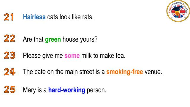 1.He is a fast driver. 2.I met a homeless person in NY. 3.I have a blue wallet. 4.Officials shared some important news. 5.Look! That phone is mine. You can’t look without permission. 6.Ancient, precious coins are exhibited in this museum. 7.What a delicious taste of this apple. 8.I have got a little money, it is enough to buy this book. 9.My dog has blue eyes and fluffy skin. 10.This night we have an appointment at a big restaurant for a corporate meeting....