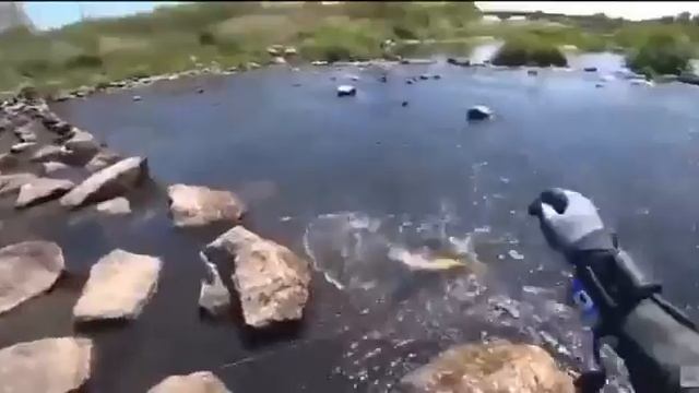 Иммигрант из СНГ живущий в Корее, охотится с рогаткой на крупных сазанов и толстолобов. Там эта рыбалка узаконена.