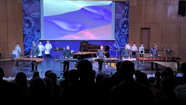 Гимн Российской Федерации. музыка: А.Александров слова: С.Михалков. аранжировка для ансамбля ударных инструментов Федотов Роман. исполняют студенты и школьники Училища искусств школьный и студенческий ансамбли. Школьники в составе: Картышев Мирон, Паутов Александр, Лев Асатрян, Лев Ханак, Пунанов Тимофей, Михарев Родион студенческий ансамбль ударных инструментов в составе: Евграфов Сергей, Тернов Максим, Тигров Владимир, Ишмаев Михаил, Коржавина Полина