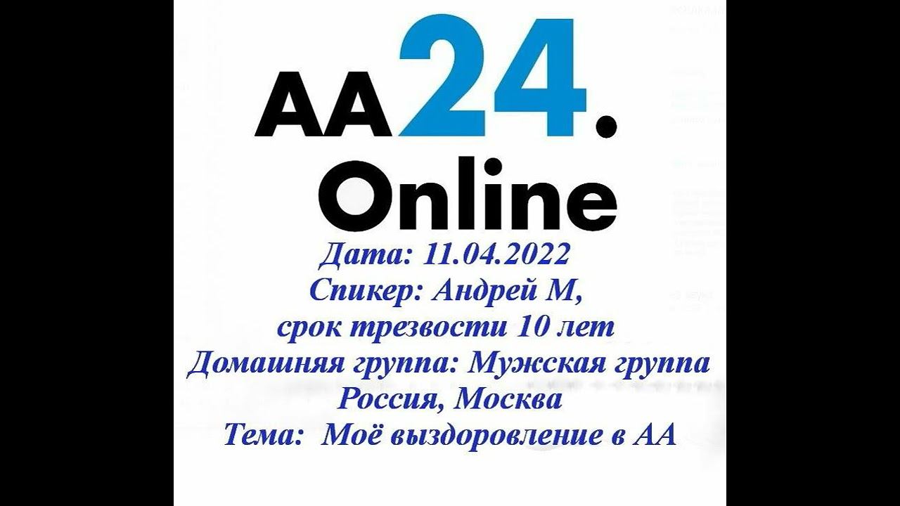 11.04.2022 Андрей М, срок трезвый 10 лет Россия, Москва Мужская группа ТЕМА: Моё выздоровление в АА