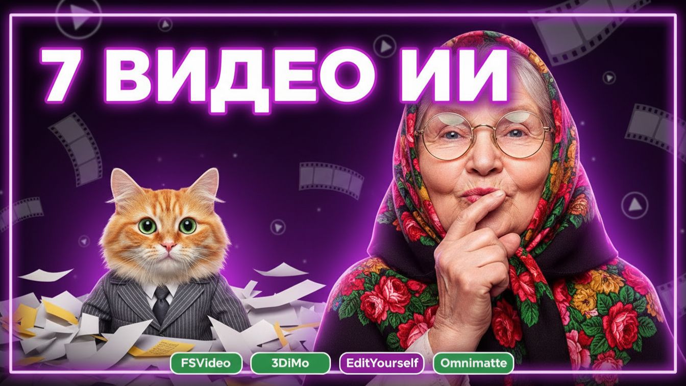 Бабушка в шоке! Nейросети теперь видео монтируют сами! Семь статей за неделю: от генерации видео до 3D-анимации. Раньше плёнку ножницами резали, а теперь тык и готово! ⏱ Таймкоды: 0:00 Бабушка — Введение 0:24 PaperBanana 1:41 FSVideo 4:10 Omnimatte Zero 5:27 3DiMo 7:36 InterPrior 9:32 FastsVMT 11:11 EditYourself