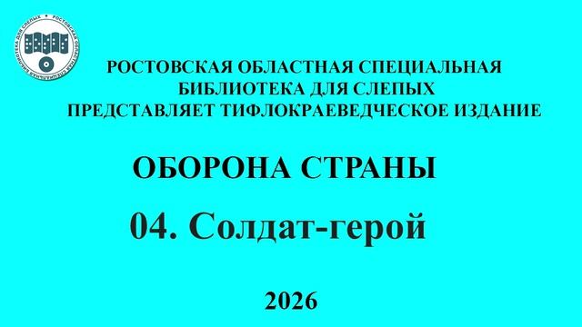 В феврале 2026 года Ростовская библиотека для слепых выпустила новый тифлокраеведческий сборник «Оборона страны». Героев Советского Союза в России много. Очень много. И большинство из них посмертно… Стали Героями и авиаторы Лидия Литвяк и Алексей Соломатин, молодожёны. Сведений о них мало. Известно только, что оба погибли в 22 года на Миус-фронте. Ещё меньше информации о танкисте Фёдоре Самохвалове – первом советском школьном учителе Герое Советского Союза. Ему было 25... Имена космонавтов знают все. Но имя того, кто подписывал разрешение на полёт, раскрыто лишь в 21 веке. И о нём – фактов предостаточно. Леонид Смирнов - глава военно-промышленного комплекса СССР. Самый засекреченный государственный деятель Советского Союза. Оборона страны – это и фронт, и тыл. Читать книгу в формате *pdf по ссылке: clck.ru/3RnFgb #мкро #культураростовскойобласти #РОСБС #тифлокраеведение #ГероиСоветскогоСоюза #ЛидияЛитвяк #АлексейСоломатин #ФедорСамохвалов #ЛеонидСмирнов #русскиеавиаторы #русскиетанкисты