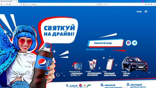Сайт акции: https://promo.pepsi.ua/ Больше акций на сайте: https://action.co.ua/blog/. (Если не трудно, перейдите на него и кникните по любой баннерной рекламе, а мне будет приятно) А также: https://ruaction.ru/blog/ (Если не трудно, перейдите на него и кникните по любой баннерной рекламе, а мне будет приятно) Мой Инстаграм: https://www.instagram.com/evgeny_dorosh/ Мой обзор на акцию от сухих завтраков Несквик 2020 — Выиграй дрон DJI Mavic Mini и экшн-камеру GoPro Hero 7 Silver от Nesquik, Lion, Cini Minis. Сроки акции: с 15 ноября 2020 года по 15 января 2021 года. Условия участия в акции: 1. Необходимо купить напиток «Пепси», «Миринда» или 7Up, с обозначением акции на этикетке «Святкуй на драйві»; 2. Получить и сохранить чек до конца акции; 3. Найти уникальный 11-значный код под крышечкой; 4. Зарегистрироваться на сайте акции promo.pepsi.ua и зарегистрировать код в личном кабинете; 5. Также код можно зарегистрировать по-другому — отправить СМС с кодом на акционный номер. При этом, стоимость СМС-сообщения составит 1 гривна; 6. Третий способ регистрации кода — с помощью мессенджеров Viber и Telegram, попасть в которые можно с главной страницы акционного сайта; 7. Один участник может зарегистрировать не более 5 кодов в сутки; 8. Каждый пятый участник, кто зарегистрирует код, получит подписку в онлайн-кинотеатр «Диван ТВ»; 9. Первые 10 тысяч участников, кто зарегистрирует 5 кодов, гарантированно получат брендированный стакан в подарок; 10. Кроме того, каждый зарегистрированный код примет участие в еженедельном розыгрыше смартфона, а за 2 кода вы примете участие в главном розыгрыше автомобиля; 11. Смартфоны и автомобиль будут разыгрываться случайным образом, поэтому чем больше кодов у участника, тем выше его шансы на выигрыш; 12. Розыгрыш смартфона будет проходить: 23, 30 ноября, 07, 14, 21, 28 декабря 2020 года, 04, 11 и 16 января 2021 года; 13. Автомобиль будет разыгран 18 января 2021 года; 14. Дополнительную информацию можно получить из официальных правил на сайте акции https://promo.pepsi.ua/ или по телефону горячей линии: 0(800)300-309 (звонки по Украине бесплатный). Продукция, участвующая в акции: Напиток Pepsi, Mirinda и 7UP, с акционной этикеткой «Святкуй на драйві». Какие призы можно выиграть в акции? Гарантированные призы: — Доступ на 5 дней в онлайн-кинотеатр «Диван ТВ», на пакет «Празднуй на драйве» — данный приз получит каждый пятый участник, зарегистрировавший код; — Фирменный стакан (10000 призов). Данный приз получат первые 10 тысяч участников, зарегистрировавших 5 кодов. Еженедельный приз: — Смартфон (9 призов). Главный приз: — Автомобиль BMW X1(1 приз). Организатор акции ООО «Сандора» ---------------------------------------------------------------------- Мой Инстаграм: https://www.instagram.com/evgeny_dorosh/ Ставь лайк, если тебе хоть чуть-чуть было интересно смотреть ролик и подписывайся на канал, чтобы ничего не пропустить! :) ----------------------------------------------------------------------