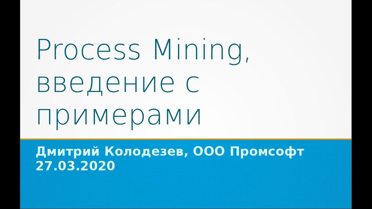 Рассказ про Process Mining на внутреннем лекториуме что это такое какие задачи решает какие данные нужны есть ли тут машинное обучение что есть на рынке готового и почем что лучше - Celonis или своя разработка как быть, если бюджет на процессмайнинг пока не согласован. Слайды: https://kolodezev.ru/download/slides-process-mining2.pdf Во время лекции я работал с конфиденциальной информацией. Ее пришлось вырезать (есть пропуски в изложении).