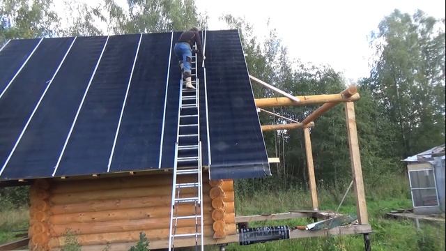 Строительство Бани-Накрыл Баню Кровлей Технониколь с Соседом-Везу Лестницу на Мотоцикле-Часть5-2020