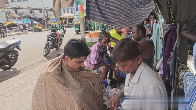 Уличный парикмахер ASMR Стрижет и чисто бреет на обочине дороги