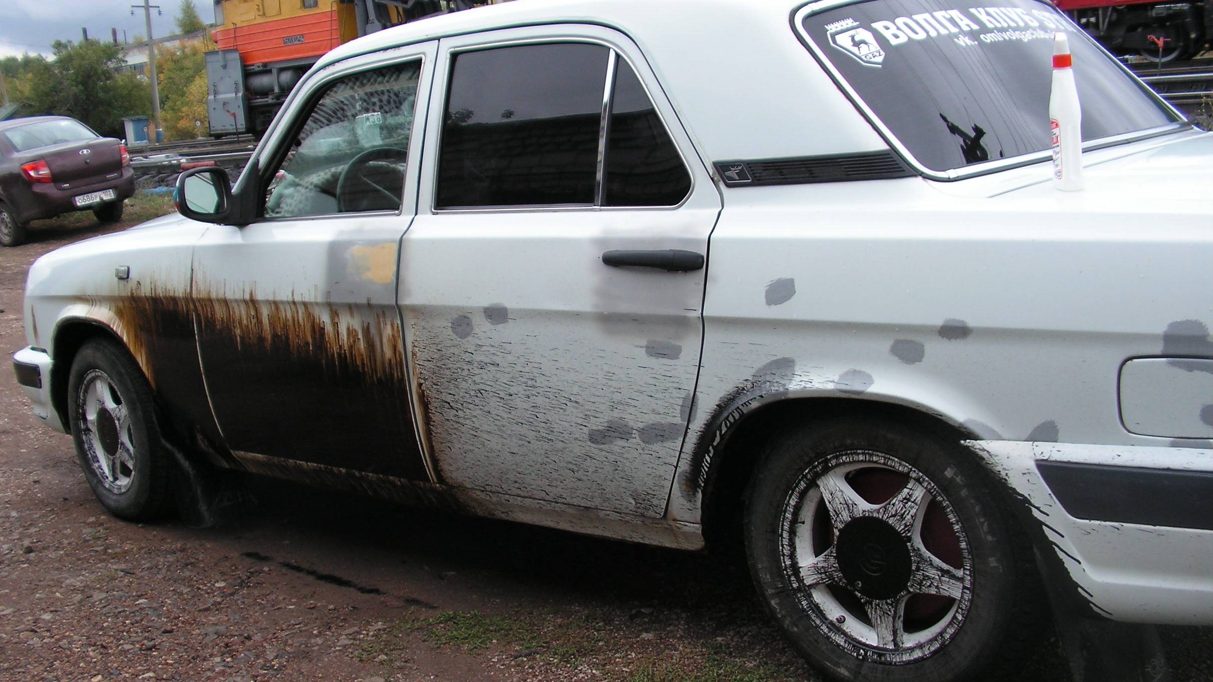 В очередном путешествии залетел в битум на дороге. Его устранение на волге газ3110, спецсредством.