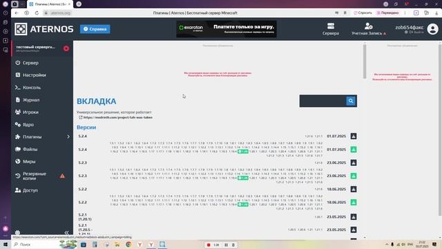 как удалить плагины на сервере атернос