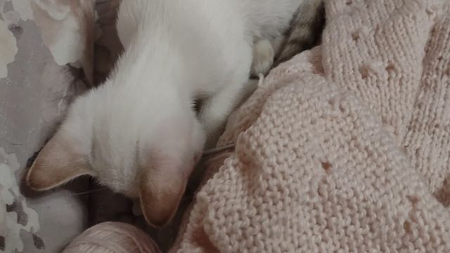 Тайский котенок играет с тем, что ему попадется под лапу