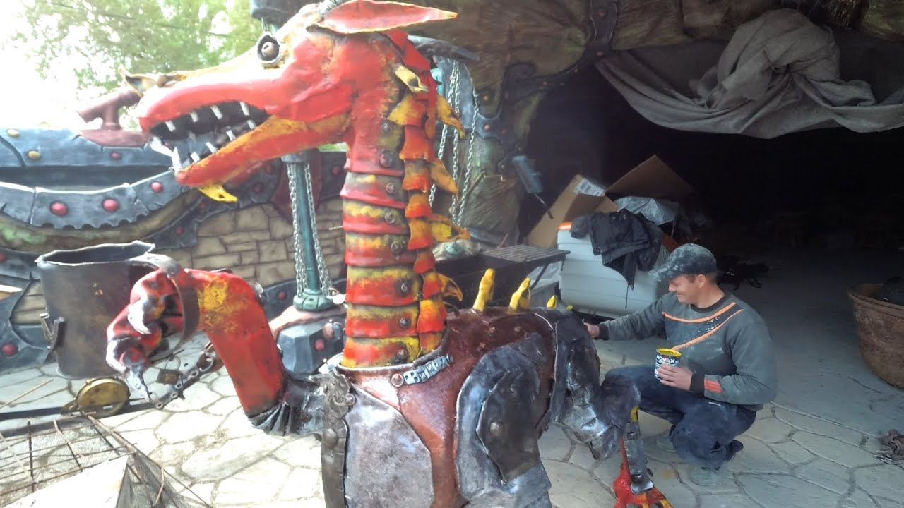 покраска скульптуры дракона из метала.пещера паука. страна Вихляндия