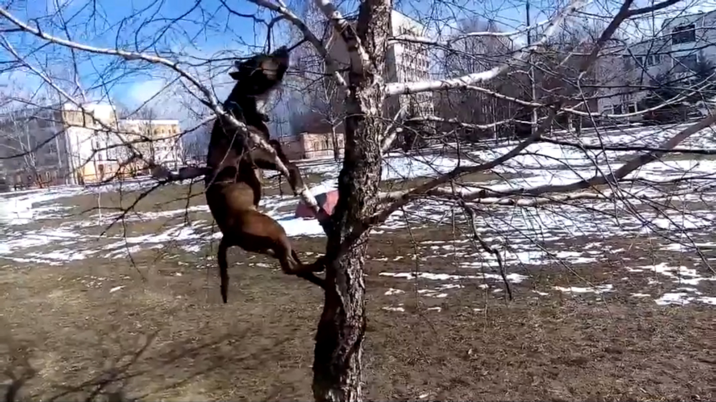 Собака - за кошкой по деревьям залезака