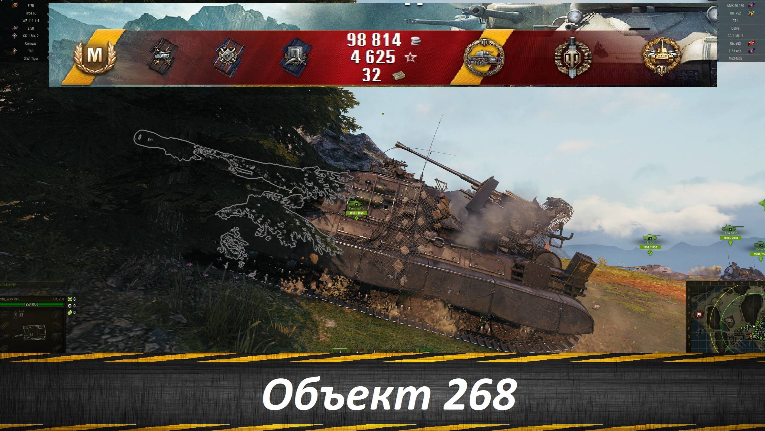 Объект 268, 7025 урона, 6 уничтоженных, 6 наград