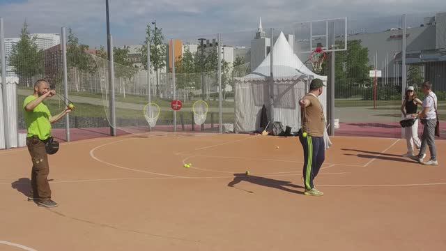 Спортивное метание пращой теннисного мячика. Турнир "Дуэль-Батл". Метание пращой на скорость