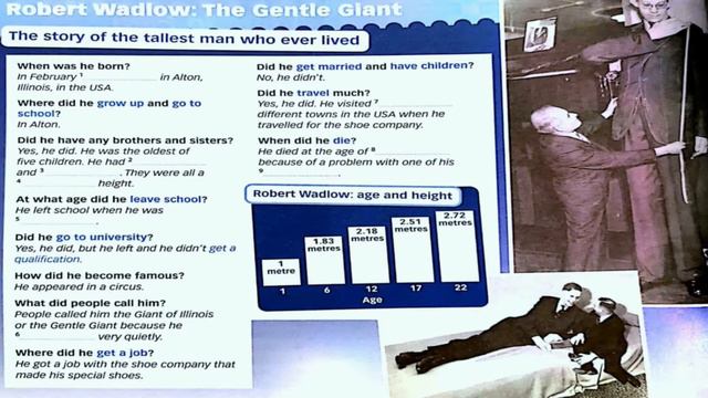 ENGLISH Plus 1 Year 5, Unit 7: Growing Up | page 76 | Vocabulary and Listening - Life Events | Robert Wadlow: The Gentle Giant ****Remember to LIKE and SUBSCRIBE Practice your vocabulary and listening ! Refer to CEFR Plus 1 Year 5 Textbook, Unit 7: Growing Up PAGE 76 VOCABULARY AND LISTENING | ROBERT WADLOW: THE GENTLE GIANT Please share the link of video for education purposes. You're welcome to share the link for your classes. Do not screenshot the content in my video to be used anywhere. Thank you. ^Disclaimer: No copyrights infringement are intended