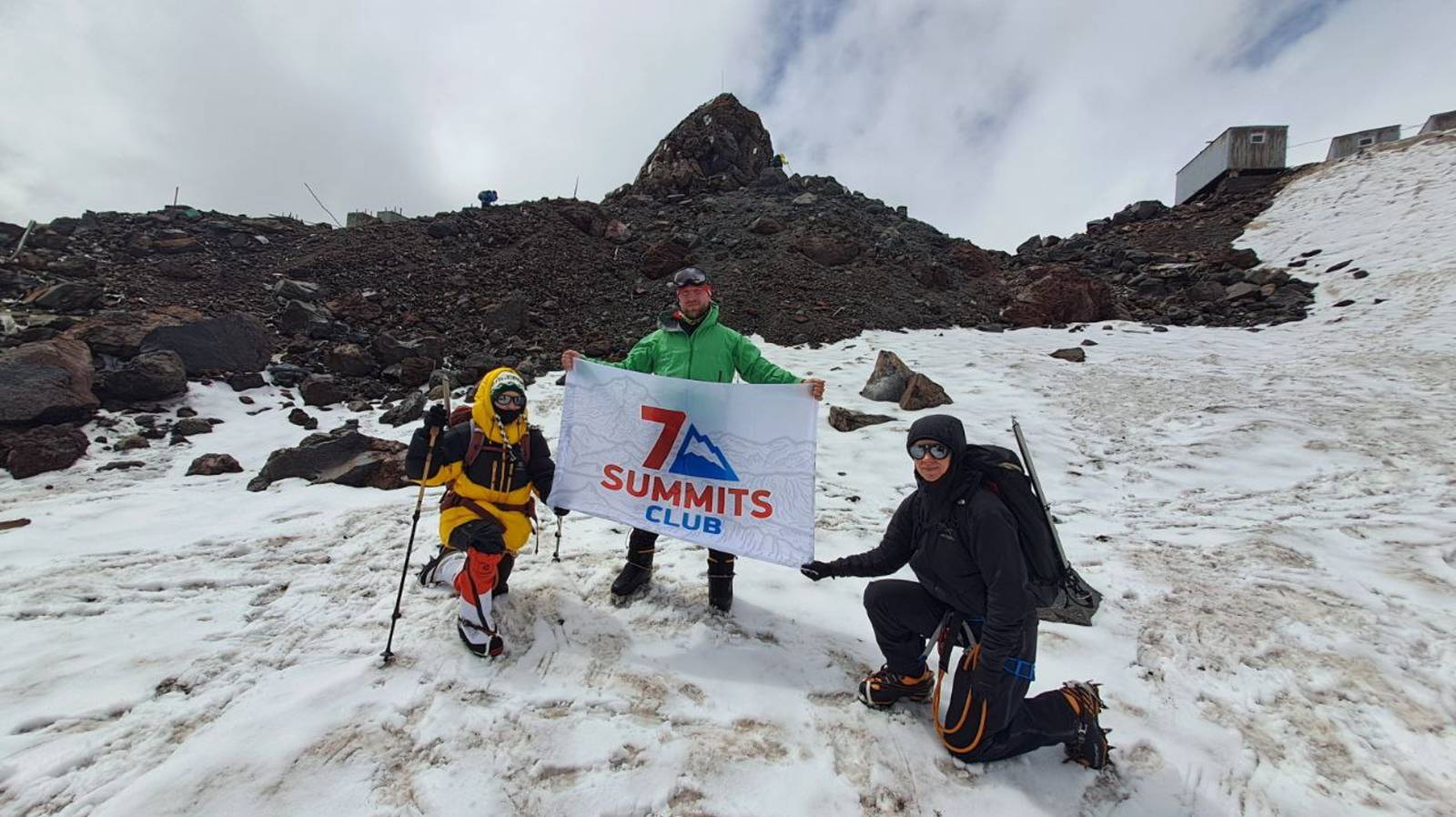 Супер-гид Клуба 7 Вершин Дмитрий Семёнов передаёт из Приэльбрусья: Физкульт-привет от суперкоманды "Электролиты"! Сегодня мы начали нашу высотную акклиматизацию на склонах Эльбруса. Поднялись в район Приюта Одиннадцати 4070м, где провели снежно-ледовые занятия. Погода была хмурой и прохладной, снег сырым, но участники со своей задачей справились.