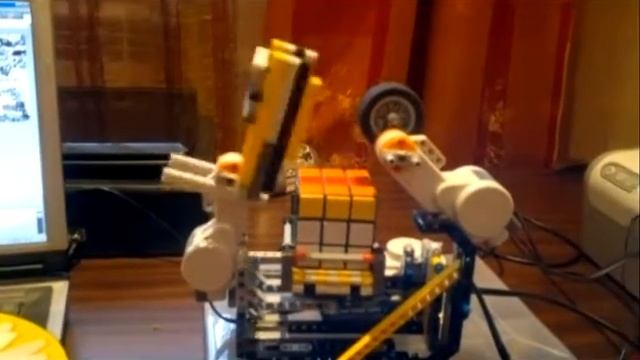 из конструктора ЛЕГО МИНСТОРМС собран робот по сборке кубика рубика программа написана для сборки шахматного кубика