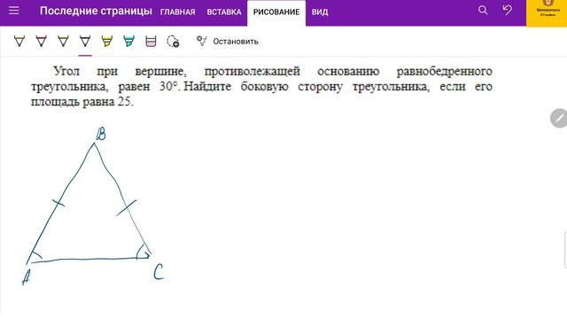 ТГ-канал: t.me/ege_oge_maths. Вся теория и практика для ПРОФИЛЬного ЕГЭ: https://stepik.org/a/123457. Много задач для самостоятельного решения с моментальной проверкой результата! Разбираем Задание 1 - геометрия в плоских фигурах профильного уровня. В видео работаем с площадями в равнобедренном треугольнике. И решаем задачи: 1. Боковая сторона равнобедренного треугольника равна 5, а основание равно 6. Найдите площадь этого треугольника. 2. Угол при вершине, противолежащей основанию равнобедренного треугольника, равен 30. Найдите боковую сторону треугольника, если его площадь равна 25.