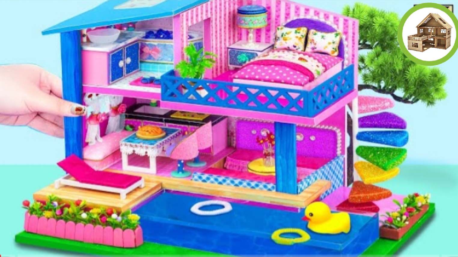 Миниатюрный современный дом для вечеринок с настоящим бассейном своими руками из картона /137