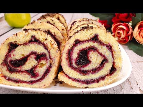 Бисквитный рулет с черной смородиной - простой и вкусный рецепт