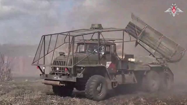 💥 РСЗО «Град» артбригады ВДВ нанес удар по позиции пехоты ВСУ в лесу. 🔹 Минобороны России