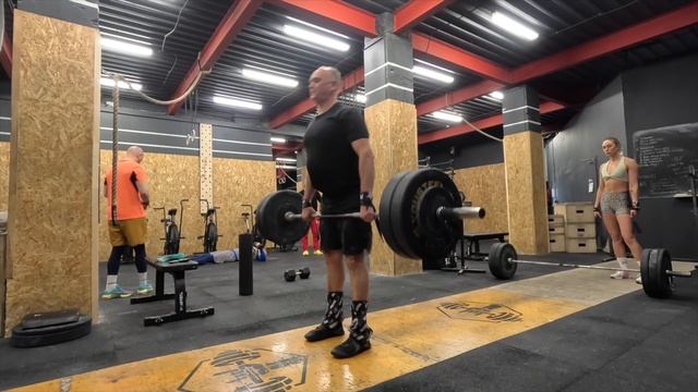 143 тренировка Навык 15 мин, каждые 30-60 сек Попытка ходьбы на руках Или Набрать 60-100 м ходьбы, отрезками по 5-10 метров Или Практика стойки на руках 10 мин Сила Чередуя каждые 2,5 минуты, 25 минут 10 становых тяг Максимум строгих отжиманий в стойке Тяга - вес прошлой недели, +1 повтор. В стойке, в посильную амплитуду, или от пола, до появления пауз 2-3 секунды. * 65 (кг) Комплекс 14ЕМОМ, чередуя 6-10 берпи через гантель боком 8-14 выпадов назад с гантелью Или Каждые 4 минуты, 4 интервала 10 берпи боком через гантель 10 выпадов назад с гантелями 10 подносов ног Максимум метров ходьба на руках до 2:30. делал 8 берпи и 10 выпадов с 22,5