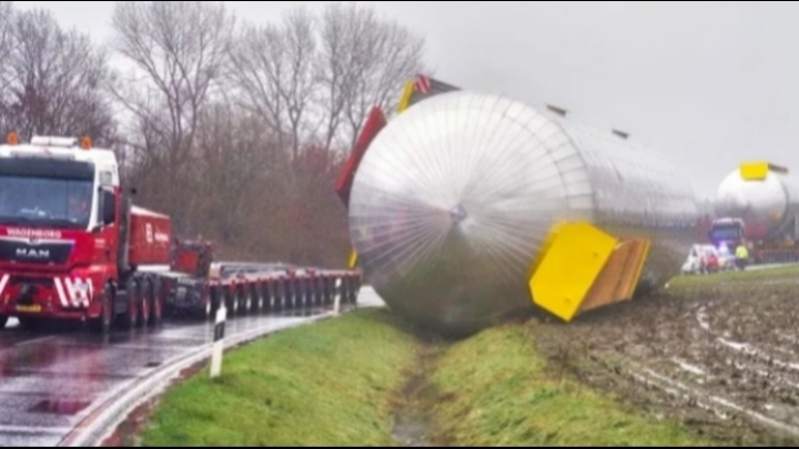 Перевернули гигантскую цисцерну