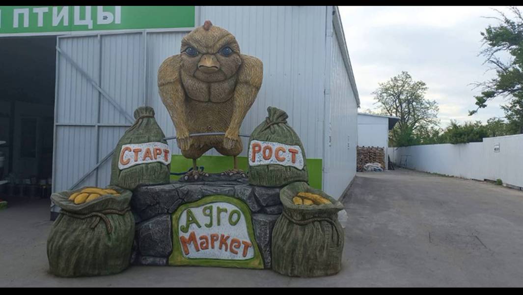 скульптура цыплёнка склад кормов для курей. мастер Коля