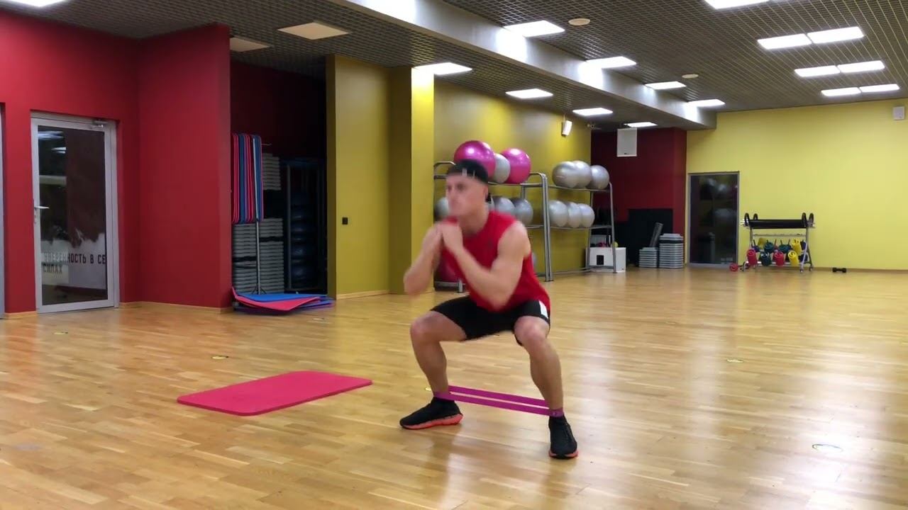 Присед с шагом в сторону с резинкой