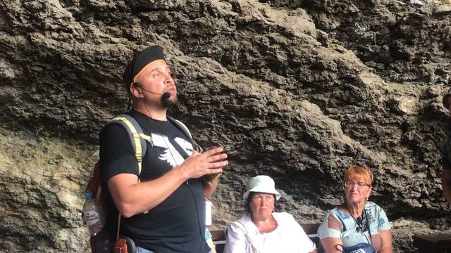 Экскурсовод рассказывает в Новом свете про грот Шаляпина и Льва Сергеевича Голицына