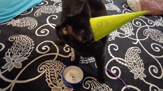 А у кого-то сегодня др. Колпак деньрожденский, трубочка в подарок - лучшая игрушка. И на десерт лакомство. ? #кот #черныйкот #тофи #др #деньрождения #колпак #подарок #педали #сандали #сандалеты #медведь #игрушка #врек #cat #blackcat #tofi #relax #birthday #happybirthday #good #fanny #fannyanimals #fannycat #bear #toy #petty #we #minsk #family #abramchukfamily