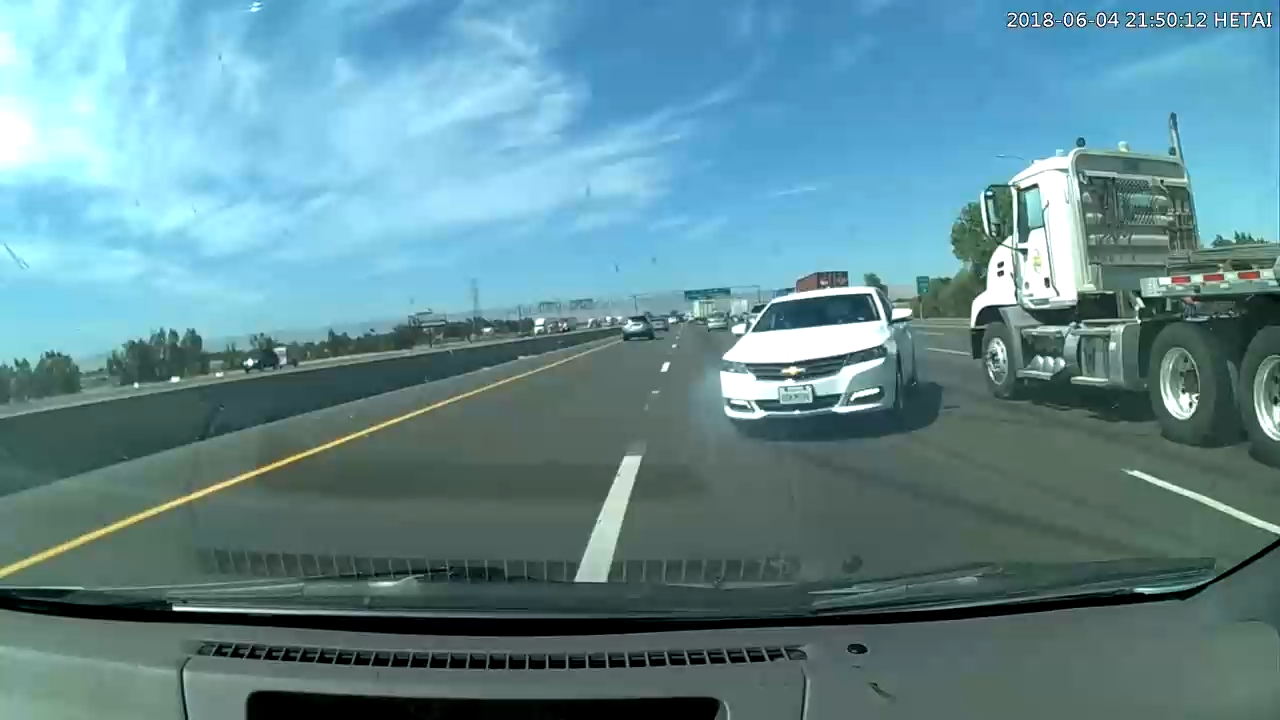 США. Внезапно из-за грузовика вылетел седан и регик чтобы избежать аварию въехал в бордюр. #дтп #авария #внезапно #встречка
